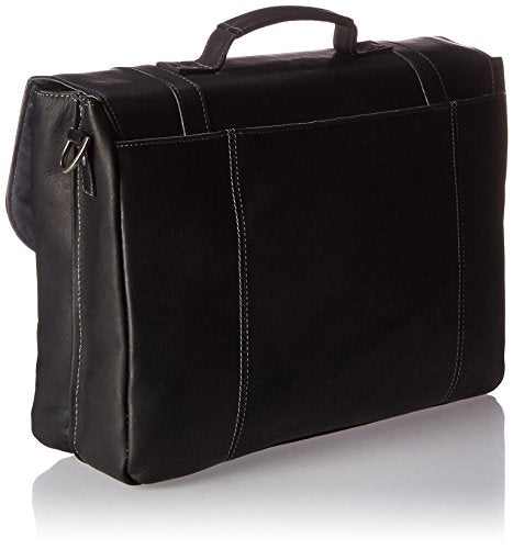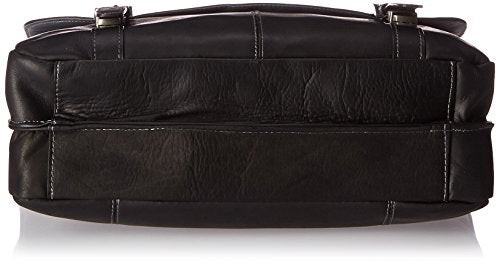 Details: Colombian leather double gusset 16 inch computer case. Fits most laptops with up to 16 inch screens, compatible with most tablets. Colombian leather exterior with fully lined interior. Under flap features an open pocket with extensive organizer to hold all your business essentials. Front compartment open to hold files, folders, notebooks. Features a center file divider between compartments. Rear compartment includes padded tablet and computer pockets. Rear exterior full length open top pocket with Velcro closure for easy access to frequently needed items. Wrapped, durable top handle. Removable, adjustable and padded shoulder strap. Size - 16 inch L x 12 inch W x 4 inch D, item weight - 3.4lbs. This leather is a natural material and therefore subject to change from hide to hide and with daily use. The distressed appearance with occasional blemishes and variance in color is normal and does not mean there is any quality issue with the product. Irregularities in the consistency of this leather are inherent of its natural beauty and personality.