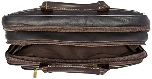 Details: Columbian leather double gusset top zip EZ scan 15.6 inch computer port with iPad/tablet pocket with gusseted front pocket. Checkpoint friendly EZ - scan feature. Holds most laptops with up to a 15.6 inch screen. Includes iPad/tablet pocket. Full grain cowhide leather exterior with fully lined interior. Two front gusseted zip down pockets include organizers with various pockets and front exterior full length zipper. Front compartment includes three file dividers. Rear EZ - scan compartment features padded, I-pad pocket, computer pocket and accessory pocket and a full length zipper pocket. Rear exterior trolley strap to fit over most trolley handles. Comfortable wrapped top handles. Removable, adjustable and padded shoulder strap. Size - 16 inch W x 12 inch H x 6 inch D, item weight - 3.8 lbs. This leather is a natural material and therefore subject to change from hide to hide and with daily use. The distressed appearance with occasional blemishes and variance in color is normal and does not mean there is any quality issue with the product. Irregularities in the consistency of this leather are inherent of its natural beauty and personality.