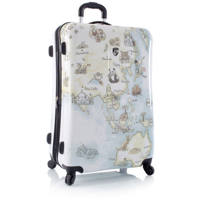 The Illustrated Maps Spinners give new meaning to the term lsquo;fashionable luggage.rsquo; Inspired by the many tourist destinations across the globe, the Illustrated Map artwork features a variety of famous icons and landmarks, making it the perfect luggage for any globe trotter. This30 inch Illustrated Maps Spinner makes a bold fashion statement. The vibrant luggage print is protected by a layer of clear coat which also gives it a beautiful glossy shine, and is sure to stand out from the crowd.