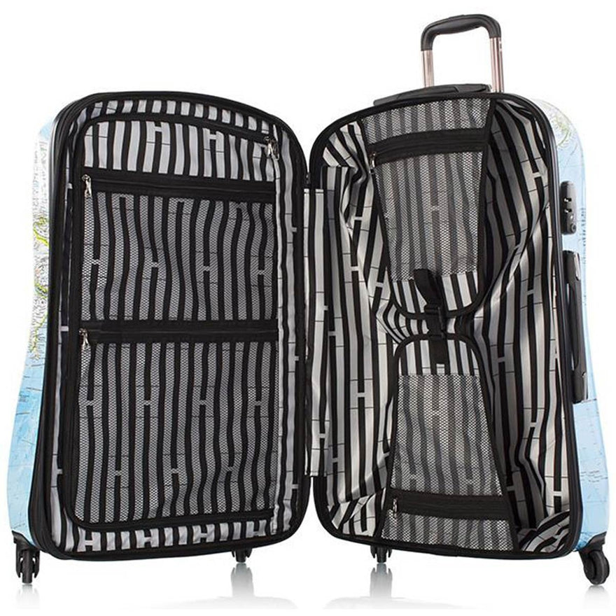 In the spirit of world travel and exploration, the Journey Fashion Spinnertrade; Set adds a whole new dimension to your luggage. Each luggage piece in the set is designed to show different parts of the world and when put together side by sidemdash;the entire set forms the world map. The prints are protected by a layer of glossy clear coat which gives it its brilliant shine as well as improved scratch and scuff protection.