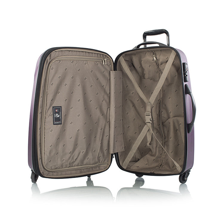 The Lightweight Prorsquo;s spinner wheels spread the load weight evenly while allowing for effortless motion in different terrains. The fully lined interior features a buckled compression strap as well as a zippered divider to help keep you organized while travelling. It has a push-button telescopic handle system with multi-stage locking heights, and comes with a zippered expansion system allowing for an extra 20% in packing capacity. It also has a built-in 3 digit combination TSA lock, these locks only allow certified TSA officials to open, inspect and re-lock your luggage if necessary. The Lightweight Pro offers incredible strength, durability, functionality and lightweight properties altogether.