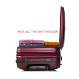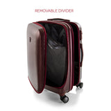 The carry-on size features a foam-padded laptop pocket that is conveniently located on the front of the luggage. This pocket will fit up to 15.6" widescreen laptops. The front access system will especially make it very easy to access your belongings while the carry-on is in the upright position. The high-quality satin lined interior features a buckled compression strap, as well as a removable divider with zippered pockets. These interior features will help keep you organized and ensure that your items stay in pristine condition while travelling. Each piece comes with a built in three-digit combination TSAtrade; lock. These locks only allow certified TSAtrade; officials to open, inspect and re-lock your luggage if necessary.