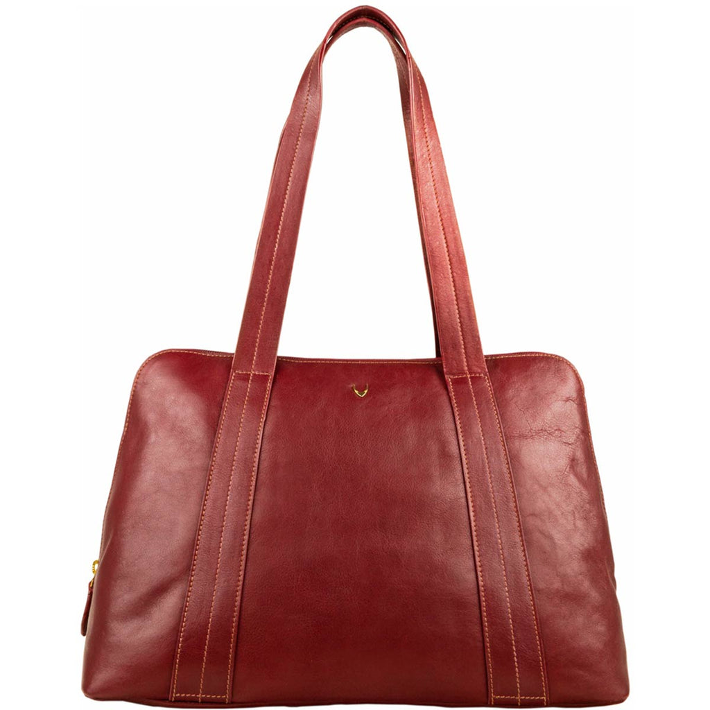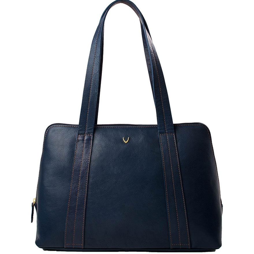 A large classic and elegant women's tote bag ideal for work or daily use. The bag is made of natural vegetable tanned leather with a contrast stitch detail on the straps and a subtle Hidesign metallic bull's head logo. The construction of the bag allows it to expand as it opens giving it plenty of space for a small laptop, tablet, papers and other office essentials.