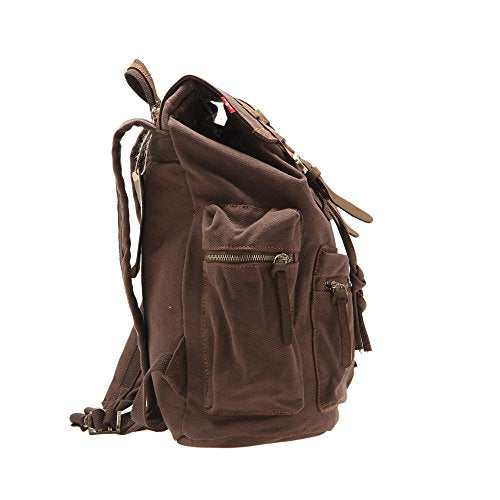 - MULTIPURPOSE: A great Rucksack for hiking, camping, traveling, shopping, school, outdoor activities, or take it to work. High density canvas backpack, rucksack, bookbags, or School bag for man, woman, student, and people of all ages.