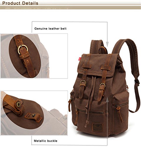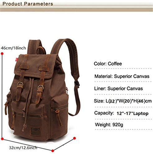 Details: AUGUR Canvas Vintage Backpack - High Capacity Retro Canvas School Backpack Hiking Travel Rucksack