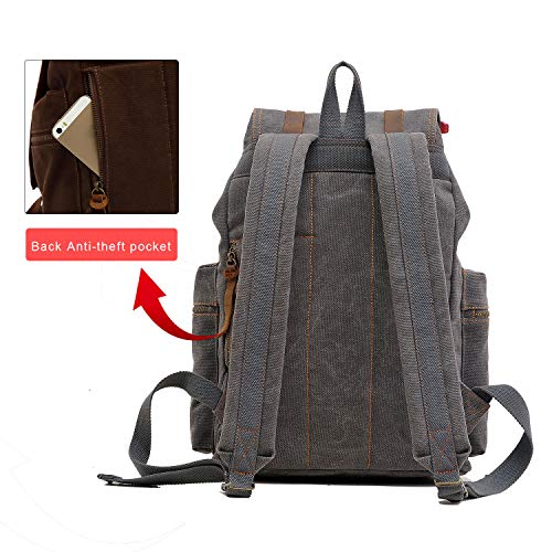Details: AUGUR Canvas Vintage Backpack - High Capacity Retro Canvas School Backpack Hiking Travel Rucksack
