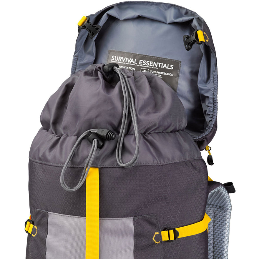 - Top-load main compartment with gusseted drawstring closure and adjustable top lid.