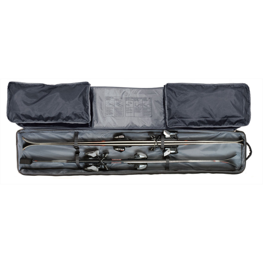 - Fully-padded main compartment holds and protects two pair of skis or two snowboards up to 185 cm.