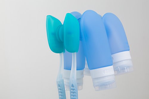 - √ UPGRADE DESIGN: Big suction cup built in travel bottle. Suction cup on the shower wall or mirror is convenient for using.