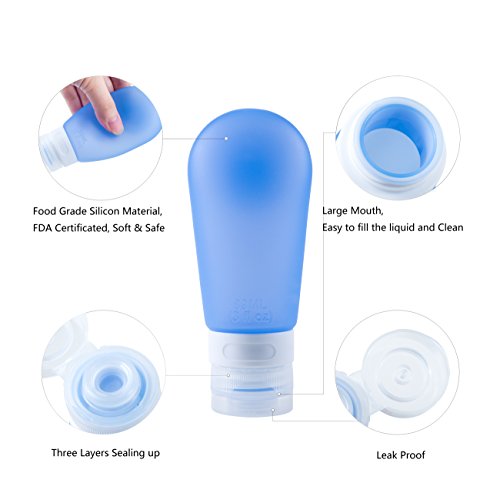- √ SAFETY: FDA Certificated + BPA Free Travel Bottles + LEAK PROOF. Bottles Made of 100% Food Grade Silicone. Triple layers soft silicone sealing up on the silicone bottle mouth.