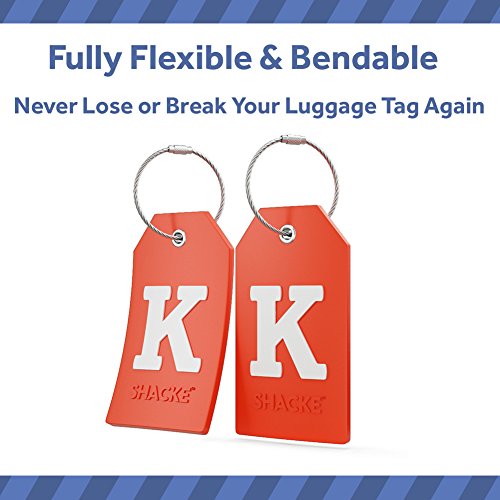 Details: Shacke's Personalized Initial Luggage Tags with Full Back Privacy Cover Using a luggage tag to help identify your luggage does not mean it has to be boring. Instead Shacke has developed a new line of initial luggage tags that are fun, easy to spot, and helps put a little personality to your own travel experience. Shacke's Personalized Initial Privacy tag is a combination of our two best-selling luggage tags (Initial Tags and Privacy Tags). Simply write your information directly onto the card using a ball point pen and your personal information is perfectly hidden by the cover at the back of the tag. It will obtaining the owner’s information very difficult in a quick glance so personal information is kept much safer throughout the trip. Our luggage tags are made from thick and durable rubber along with a sturdy steel loop for added durability. We have provided the best balance between durability, functionality, and personalization. The luggage tag is completely bendable/flexible to prevent it from breaking. Shacke Luggage Tags: - 4.5 x 2.5 inches - 1 Luggage Tag per set - Made from durable bendable thick rubber - Durable Genuine Steel Loops - Includes a Full Back Privacy Cover - Letter on Both Sides of Your Tag!