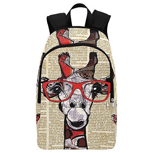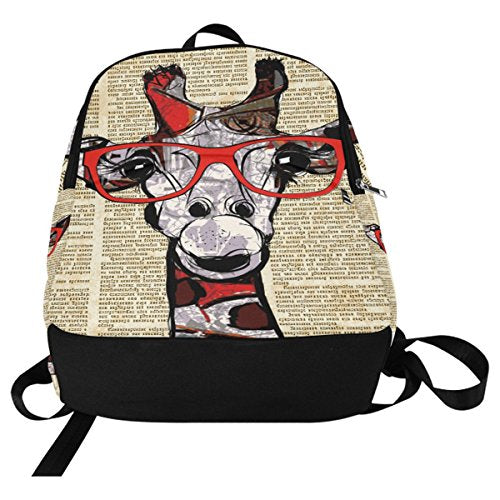 Interestprint Custom Vintage Newspaper Funny Giraffe Casual Backpack School Bag Travel Daypack Gift