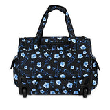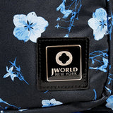 Details: J World New York donna feature with recessed locking handle with push button, padded laptop sleeve in main compartment, utility pockets on both front and side, luggage handle pass-through on the back, and padded grip handle
