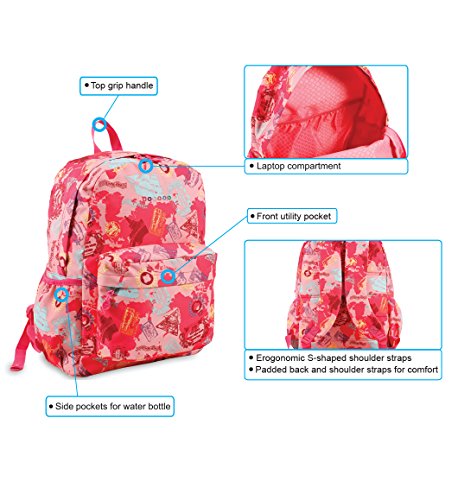 Details: J world New York oz campus backpack features a main compartment with a laptop sleeve, a front utility pocket, side pockets, and ergonomic s-shaped shoulder straps.