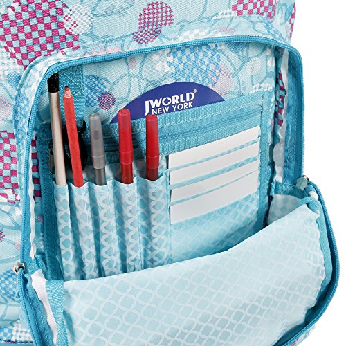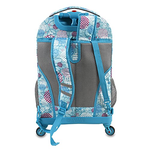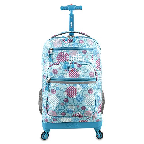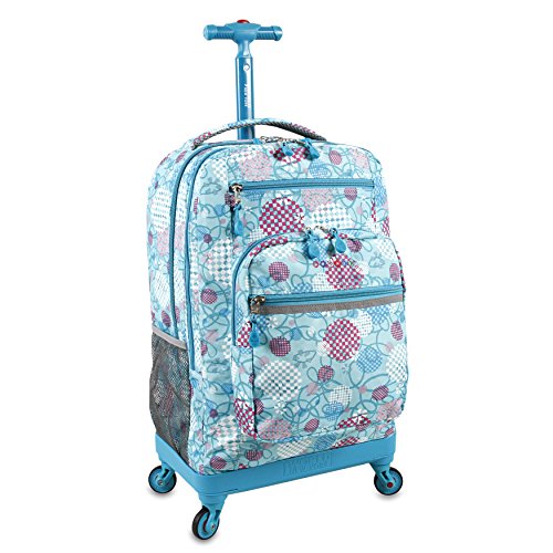 Details: J world new york sundance spinner rolling backpack features spinner wheels, a padded laptop sleeve, a front pocket organizer with pencil holders, a key fob, and a zippered pocket, air mesh cushion padded shoulder straps and back with slip-in system, side mesh pockets for water bottles, and a recessed three stage locking handle with push button and padded grip handle. Sundance spinner is designed to fit under airplane seats and in the overhead compartments.