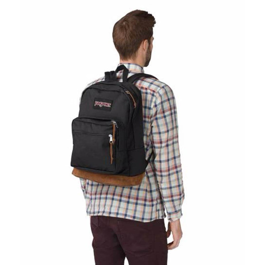 With its signature suede leather bottom, the JanSport Right Pack is the iconic JanSport classic backpack. With an internal 15 inch laptop sleeve and front organizer pocket, the Right Pack by JanSport is sure to be the best backpack for wherever your day takes you. It's the original classic, but sometimes pairing that with your outfits is all that is needed to complete a sophisticated style!