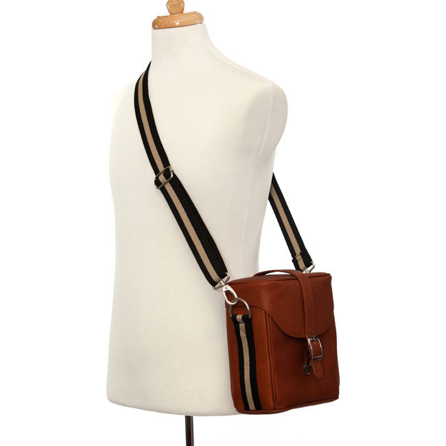 - Sturdy leather top handle and adjustable cloth shoulder strap can be worn cross-body or removed