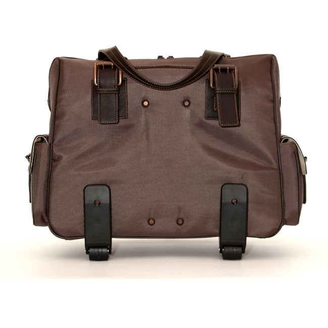- Durable weather-resistant nylon exterior with Colombian leather accents