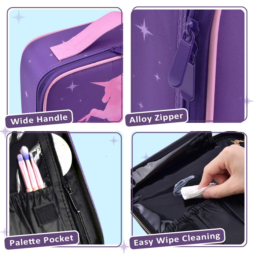 - Plenty of Storage Space: This compact yet roomy makeup bag holds everything you need for your next trip. With spacious compartments for your toiletries, makeup brushes, foundation, blushes, powders, lipsticks, and more.