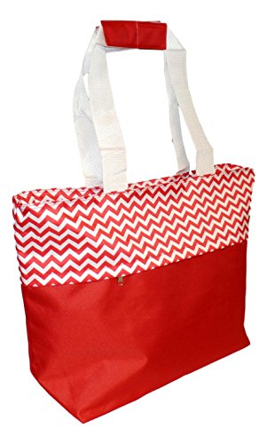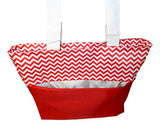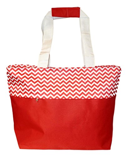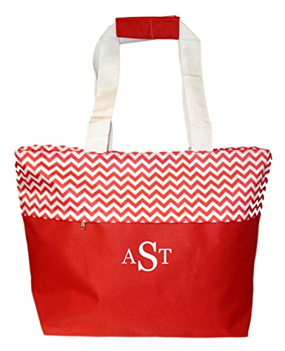 Jumbo Zipper Top Summer Beach Tote Bag - Personalization Available (Bright Red Embroidery Monogram)