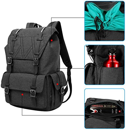 - Special Design: The drawstring in the main pocket replace the zipper, make your bag more safe and durable when put much items. The front and side pockets with the covered button, prevent your items been losing.
