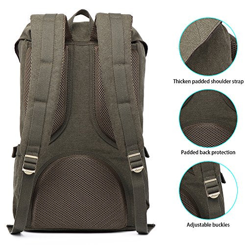- Canvas Imported HIGH QUALITY & DURABLE MATERIAL. HIGH QUALITY Canvas makes the backpack soft and comfortable. The rucksack backpack is more high-end with the durable and eco-friendly canvavs. The contoured shoulder straps and back side comes with protective air mesh padded design, easy and comfortable to carry throughout all day. Adjustable padded shoulder straps (45-90cm), tighten and loosen easily.