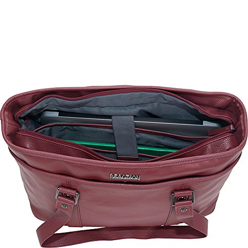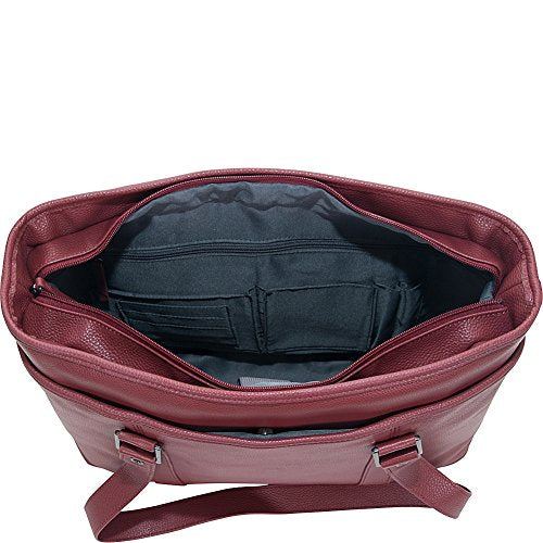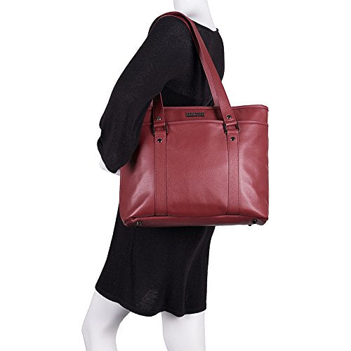 Details: Full grain cowhide leather single gusset top zip 16 inch computer tote. Holds most laptops with up to 16 inch screen. Compatible with most tablets. Full grain cowhide leather exterior body material with fully lined interior. Front exterior full length open top pocket with magnetic snap closure includes an open top pocket and an id card window. Main compartment features a padded computer pocket, a padded tablet pocket, and a business organizer. Rear exterior full length open top pocket with magnetic snap closure. Tote style handles can be carried or worn over the shoulder. Size: 18.0 inch w x 12.25 inch h x 5.5 inch d, computer compartment dimensions: 15.25 inch w x 11.0 inch h x 1.75 inch d. Weight: 1.8 lbs