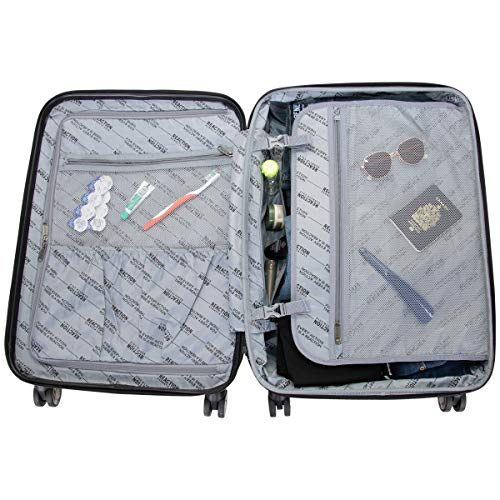 Details: Pack all your travel essentials with ease in this Kenneth Cole Reaction 'Renegade' Collection 24-inch lightweight, hardside, expandable 8-wheel spinner checked suitcase. This dependable, 24-inch checked size suitcase is loaded with amazing features, including a spacious, fully-lined, tear-resistant interior, multiple interior zipper pockets and mesh pockets, a garment restraint panel to hold your clothes in place, and two elastic shoe pockets. The luggage even expands an additional 2-inches for extra carrying capacity when needed. The exterior features four molded corner guard reinforcements that provide maximum impact resistance, protecting your bag from excessive wear-and-tear. Self-repairing coil zippers meant for long-lasting use glide effortlessly around the bag to keep your belongings safe and secure. The luggage boasts a lightweight construction to help you adhere to airline weight restrictions and avoid unwanted airport fees. Smooth, multi-directional 8-wheel spinners provide 360-degree rotation over any surface, allowing you to travel with ease. Features a sturdy, locking, retractable push-button telescopic trolley handle that extends 41 inches tall and is conducive to simple one-handed use. Kenneth Cole's 'Renegade' 24" luggage is a modern, yet traditional hardside suitcase, perfect for travelers whom value both style and function. Overall dimensions includes handles and wheels. 24" Overall Dimensions: 26. 0” H x 18. 5” W x 12. 0” – 14. 0” D. 24" Packing Dimension’s: 24. 0” H x 17. 0” W x 11. 5” – 13. 5” D. 24" Weight: 8. 9 lbs. Backed by a manufacturer 10-year limited .