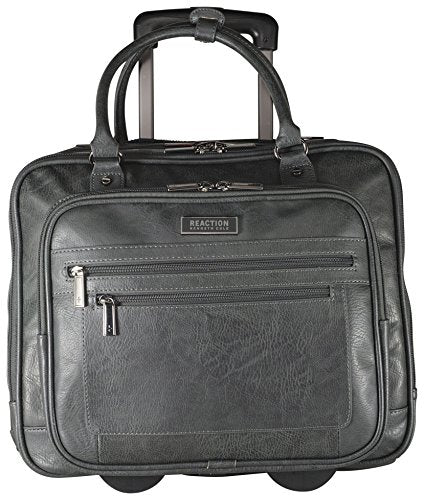 Details: Kenneth Cole Reaction double compartment pebbled faux leather 2-wheel 16-inch laptop business tote / overnighter carry-on suitcase. Holds most laptops with up to 16” screen. Compatible with most tablets. Includes removable zippered accessory pouch. Convenient, easy accessible dual front exterior zipper pockets and gusseted zip down pocket with an organizer to hold A variety of business essentials. Front compartment includes two open pockets, a removable accessory pouch, a padded tablet pocket, and padded computer pocket. Rear compartment, also known as the overnight section, include garment restraints and two elastic open top shoe / accessory pockets. Rear exterior includes a trolley strap to fit over most upright handles for hands free carrying. Overall Size: 16.0” W x 14.0” H x 8.5” D. Computer Compartment Dimensions: 15.25” W x 10.5” H x 1.5” D. Weight: 6.5 lbs. Backed by a manufacturer 10-year limited warranty.