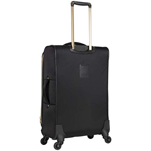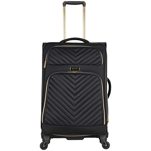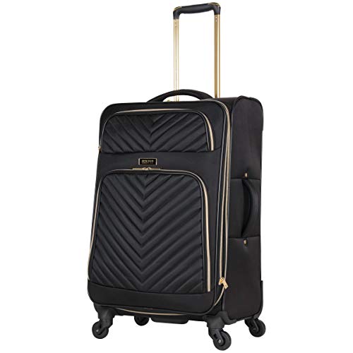 Details: Poly-twill chevron quilted 24" expandable 4-wheel upright. 4-Wheel spinners allow smooth 360 degree rotation on uprights. Lightweight construction. Poly-twill with quilted chevron exterior and fully lined interior. Front exterior features a small zipper pocket for easily accessible items and a large gusseted zipper pocket. Main compartment features a side zipper pocket and secure garment restraints to hold belongings in place and interior lid section features a full length mesh zipper pocket. Top and side grab handle for easy lifting. Rear exterior includes a business card size I.D. Pocket. Retractable and locking trolley handle. Manufacturer 10 year limited warranty. Overall size: 27.0" h x 15.0" w x 10.0"-11.5" D. Weight: 8.2 lbs