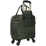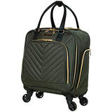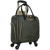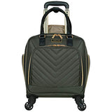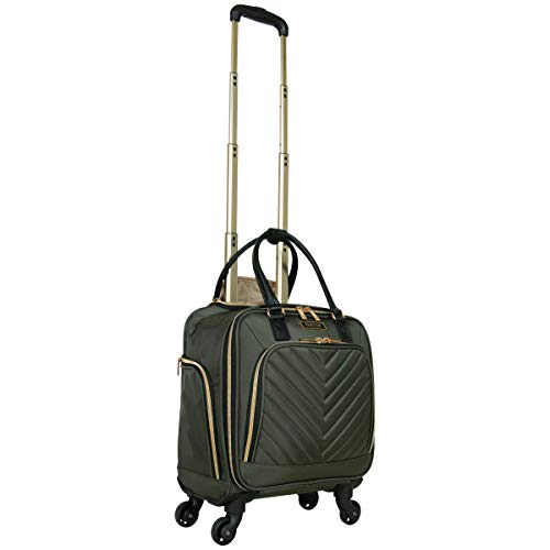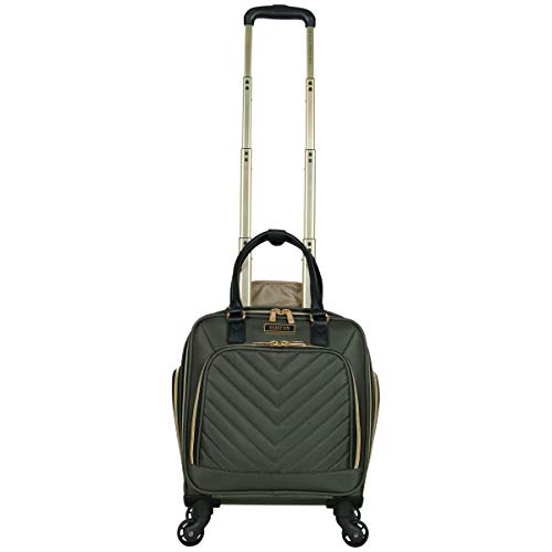 Details: Lighten your load by packing your essentials in this polyester twill chevron-quilted 4-wheel spinner underseater from designer Kenneth Cole, great for a weekend getaway or your daily commute. The bag’s lightweight construction helps you meet airline weight restrictions, avoiding unnecessary airport fees, while its 4-wheel spinners allow for effortless 360° navigation, getting you where you’re going faster. With its durable, polyester twill, chevron-quilted exterior and tear-resistant, fully lined interior take comfort in knowing that your belongings are stored safely inside. The bag’s front compartment interior includes a padded tablet pocket and organizer pockets to store smaller items, while the side exterior features two zippered pockets to hold a water bottle or other smaller items. The main compartment consists of a zippered pocket, two shoe pockets, and garment restraints and is just the right size for a short business trip or a weekend away. The bag features a retractable trolley handle extends to be 41” tall with a locking push-button mechanism, as well as a rear exterior trolley tunnel to fit over most luggage upright handles, for hands-free carrying. Additional top handles allow for comfortable and easy lifting. Meets most U. S. based airline carry-on size requirements and fits into most airline overhead bin compartments. ★ Overall Dimensions: 17. 0” H x 13. 0” L x 9. 0” D (includes wheels). ★ Weight: 5. 6 lbs. ★ Backed by a manufacturer 10-year limited . ★