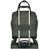 - Stylish chevron pattern exterior with gold accent zippers.