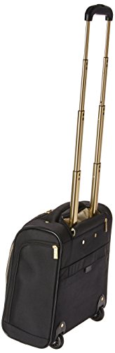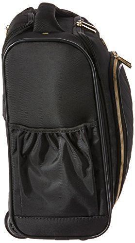 Details: Polyester-twill chevron quilted 2-wheel under seater. Lightweight construction. Poly-twill with quilted chevron exterior and fully lined interior. Front exterior features a zip down organizer with three zipper pockets to store accessories. Main zip down compartment consists of a garment panel with two wet zipper pockets. Rear exterior includes a trolley strap to fit over most luggage upright handles, for hands free carrying. Dual side exterior zippered beverage/ accessory holster pockets. Padded, easy-to-grab top handle. Sturdy front bottom feet keep bag upright and in-line skate wheels provide swift mobility. Retractable and locking trolley handle system. Manufacturer 10 year limited warranty. Overall size: 15.0" h x 13.5" w x 7.5" D. Weight: 5.65 lbs.