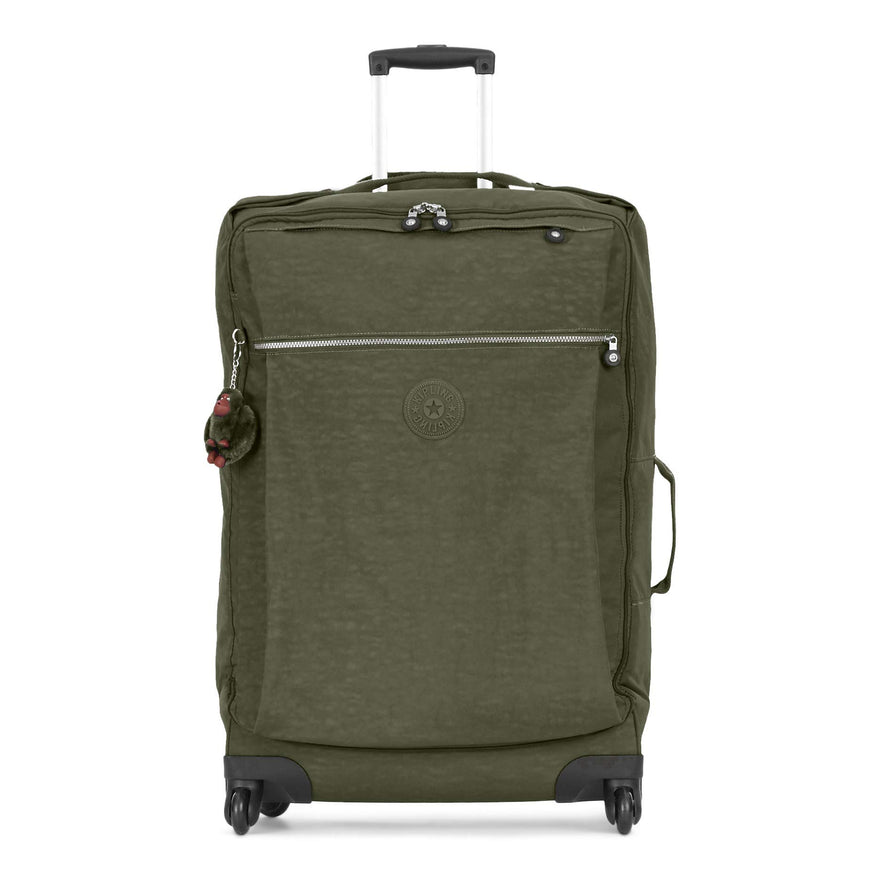 Details: The largest style in Kipling darcey wheeled luggage collection is sized to carry clothing, toiletries, and shoes...lots and lots of shoes. An ideal suitcase for international travel and epic vacations, this durable crinkle nylon luggage is easy to maneuver thanks to its four, 360-degree spinning wheels and soft carry handles. The soft nylon exterior is durable, versatile and water resistant, while interior features packing straps to keep you organized on your adventure.