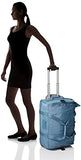Details: Carry-on ready! Get on the go with this duffle bag, featuring a collapsible design and a hidden handle for easy rolling. Inside, a zip pocket, mesh pouches and luggage straps will keep everything in place.