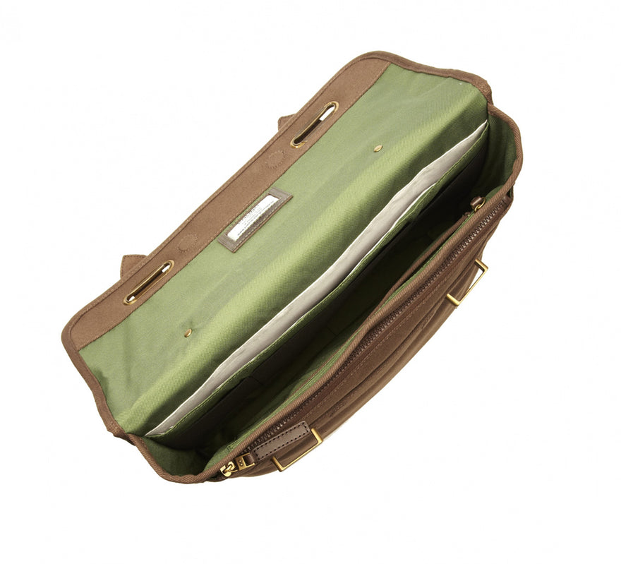 Material: Made using lightly coated cotton canvas twill fabric combined with antique brass hardware and natural raw-edge leather trim.