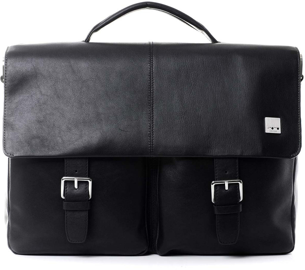 The practical and spacious Jackson full-leather briefcase is designed to safely carry a standard 15'' laptop within its built-in padded sleeve. The brief has 2 large zip sections, one for your laptop and the other for work essentials. Each section closes with press-studs and the Jackson's flap protects all of your belongings with a mock-buckle. Folders and files fit easily inside, while multiple interior elastic pockets carry all of your electronic necessities. With a detachable shoulder strap for a cross-body option, this is a must for stylish executives.