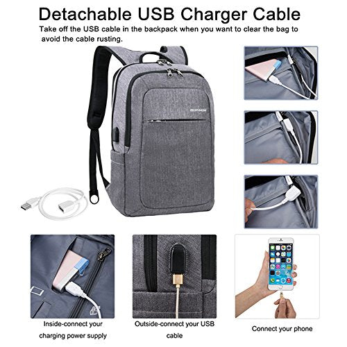 - 【Detachable USB Port】External USB charging port with charging cable is convenient for you to charge your smart phone, tablet and other electronics devices. Better for cleaning backpack, replacing the cable by removing the built-in cable.