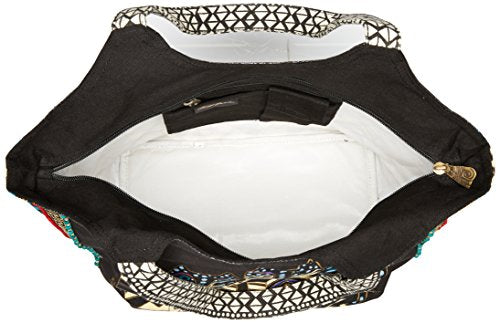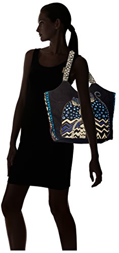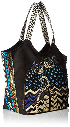Details: These laurel burch totes are designed with her magically uplifting whimsical creatures. The bright colors, fun images and the practical construction of these totes make them popular all over the world. Features-12-1/2 by 19-1/2 by 8-3/4-inch, canvas shoulder straps, main zipper closure, inner 4-1/4-inch cell phone pocket with a velcro closure, a 4-1/2 by 4-1/2-inch open pocket and 6-3/4 by 7-1/4-inch zippered pocket. Spotted Cats is constructed of canvas with a wooden and canvas charms. Imported.