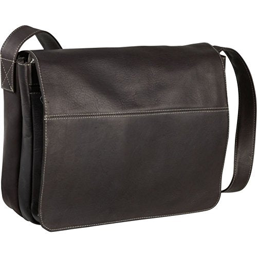 Details: Handcrafted construction, genuine full grain leather, contrast stitching, magnetic closure, large zippered pocket, two pockets under flap, roomy padded interior, padded laptop section, interior organizer pocket, adjustable leather strap, strap max. Drop length 23", rear slip pocket. 1) Dimensions: 15" x 4" x 12" . 2) Laptop section: 14.5" X 10" x 2". 3) Weight 2.5 lbs. .