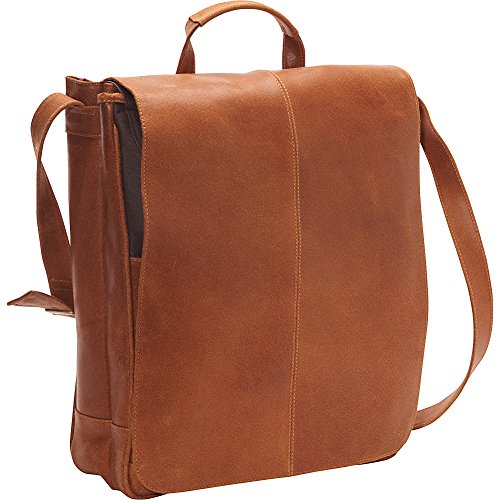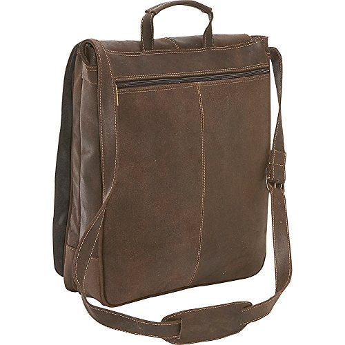 Details: This contemporary styled LeDonne distressed leather messenger bag fits most modern 17" laptops. The durable distressed leather and superior quality construction makes this a leather bag that will last for years features: Genuine distressed leather handcrafted adjustable leather strap with shoulder pad two main compartments padded laptop section with secure Velcro closure fits laptops up to 17" one exterior zip pocket two interior slip pockets under flap contrast stitching top handle rear zipper pocket. Dimensions: 17.5" x 14" x 5". Laptop dimensions: 16.5" x 13.25" x 2.5". Weight: 2 lbs., 8 oz. One year manufacturer warranty.
