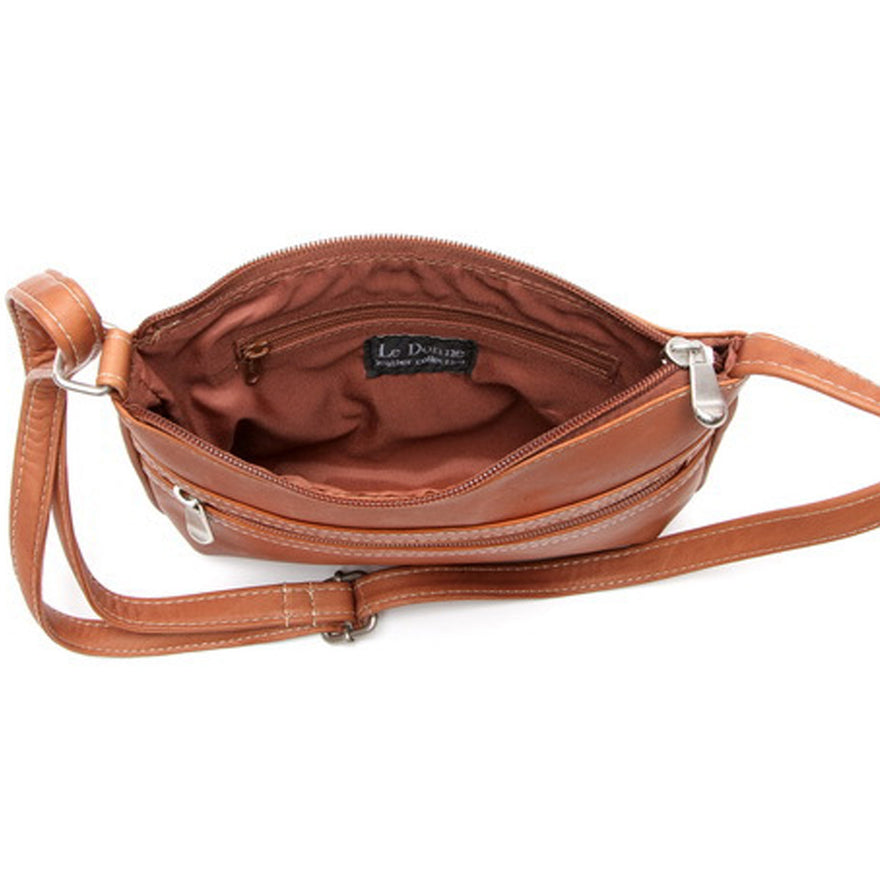 Bring your everyday essentials with you while you're on-the-go with casual, comfortable style in the Le Donne Leather City Crossbody Bag. This soft, smooth, supple, and luxurious Colombian full-grain leather bag features a slim, compact design, contrast stitching, and antique hardware; and it's available in several colors. It has a top zip closure, and it's matching, lined interior includes a zip pocket ideal for stashing your keys in; a cell phone pocket; a slide pocket ideal for holding your note pad or favorite electronic device; and just enough room for your wallet, checkbook, sunglasses, powder compact, and lipstick. Its front zip pocket offers additional organization and quick access to frequently-needed items, and the Le Donne Leather City Crossbody Bag comes with an adjustable shoulder strap for your carrying comfort.