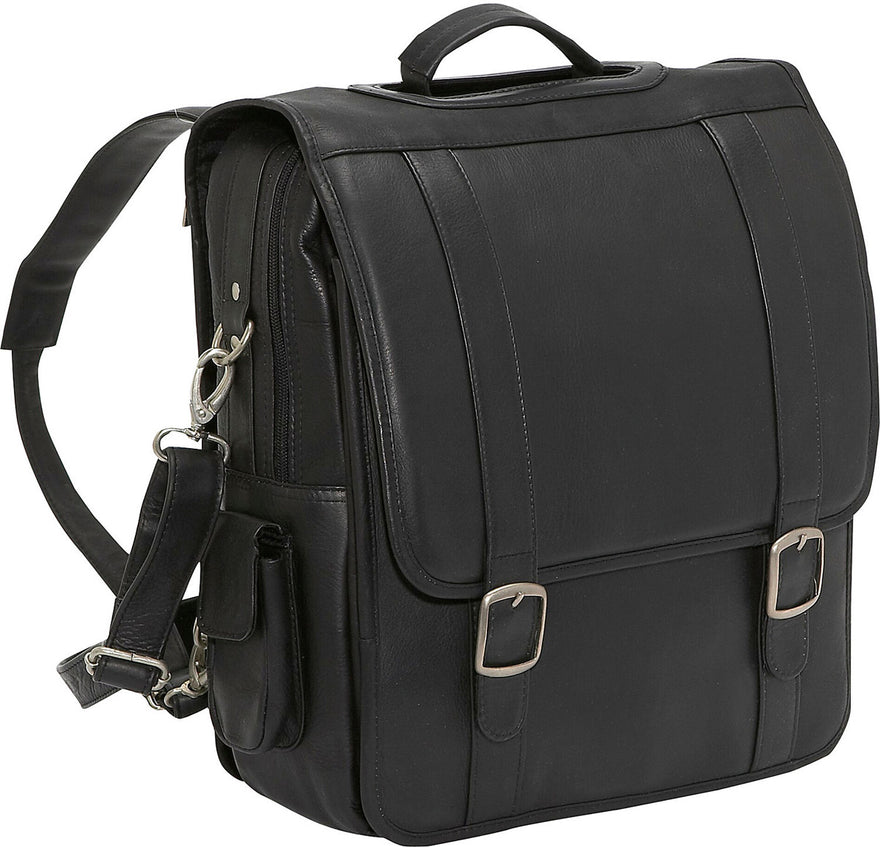 This Le Donne leather backpack is a laptop bag with an identity crisis, backpack or briefcase?? You decide, the back straps hide away in a rear zipper pocket so you can carry it like a leather briefcase. This versatile leather bag is perfect for students with plenty of organizing options and lots of room for a laptop and books.