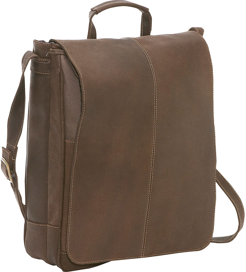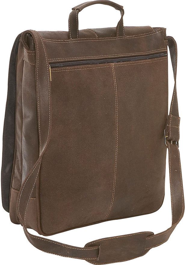 Keep your laptop computer handsomely protected and your business essentials neatly stowed in the Le Donne Leather Distressed Leather 17" Laptop Messenger. This luxurious Colombian full grain leather vertical messenger bag features flapover construction and opens to reveal a spacious, divided main compartment with a padded laptop computer section and plenty of room for your files and portfolios. Slide pockets under the flap provide quick access to your cell phone and favorite electronic device, and the Le Donne Leather Distressed Leather 17" Laptop Messenger has a zippered rear compartment perfect for loose documents or newspapers.