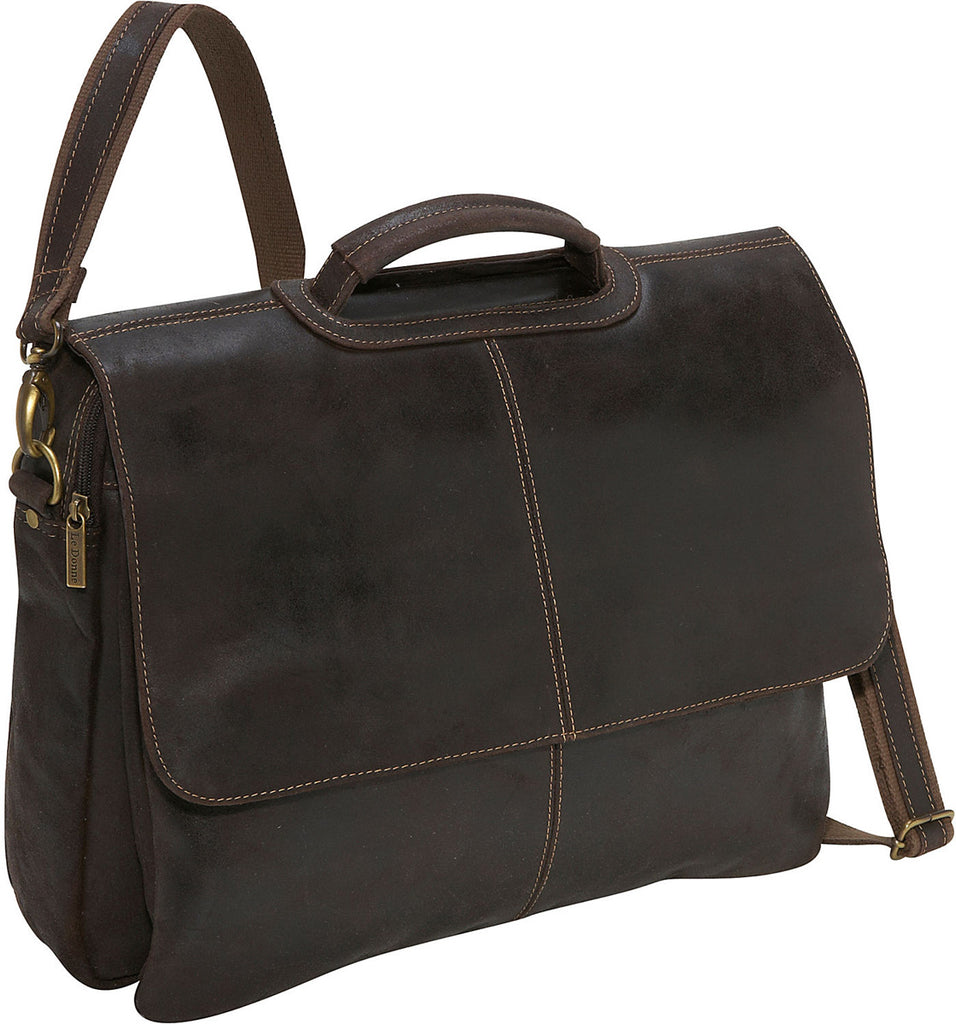 This Le Donne distressed leather briefcase is stylish yet casual, you'll feel comfortable wearing this laptop bag to the office or just around town. Travel a lot for business? This durable laptop briefcase has plenty of room for all your essentials plus your laptop.