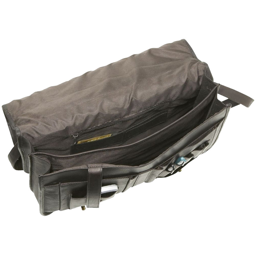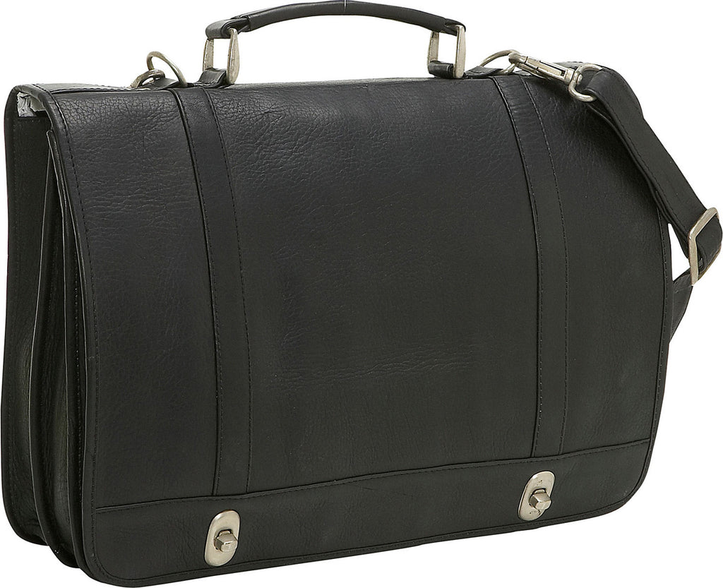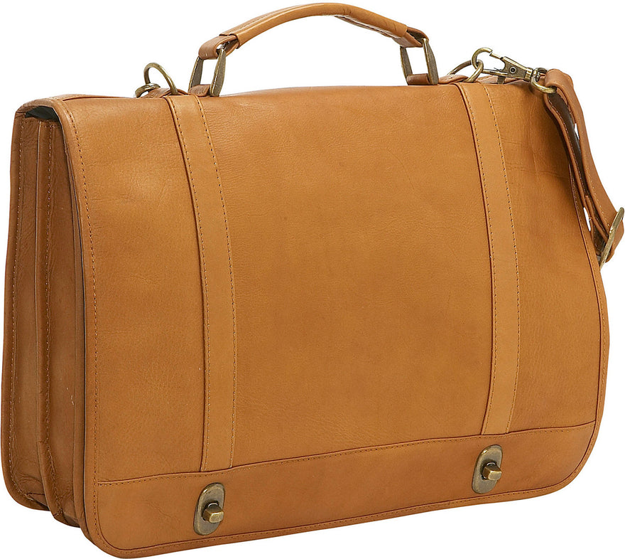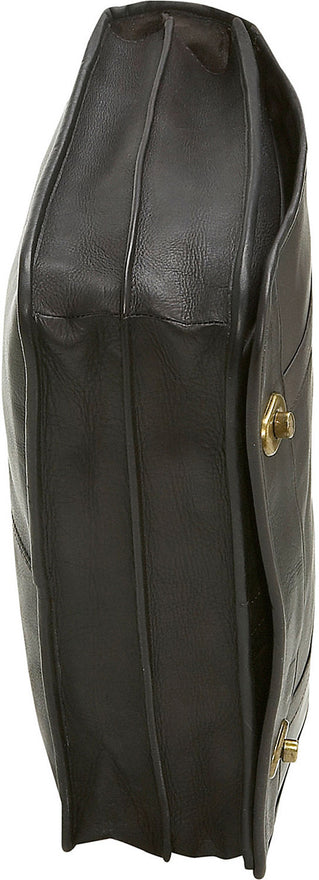 Le Donne Leather Flap Over Briefcase is handcrafted using full grain colombian Vaquetta leather. This luxurious leather brief has a front organizer compartment for a cell phone/PDA, pens, and business cards under the flap. It also has two front slip pockets, two interior compartments, interior business card holders, interior zipper pocket, rear quick access zip pocket, and an adjustable and removable strap with pad.