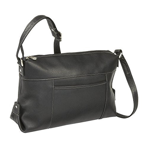 Details: Top zip front slip shoulder bag. This LeDonne Top Zip Front Slip is a classic style leather shoulder bag with contrast stitching for a little flair' It's the perfect leather handbag for everyday This soft luxurious full-grain Vacquetta cowhide leather bag features contrast stitching and antique hardware. It has a top zip closure, and it opens to reveal a spacious, lined interior with a zippered back wall pocket for keeping valuables safe and secure; a cell phone slide pocket; a slide pocket perfect for holding your note pad or favorite electronic device; and plenty of room for your daily necessities. Exterior zippered and slide pockets provide quick access to frequently-needed items, and the Le Donne Leather Top Zip Front Slip Shoulder Bag comes with an adjustable shoulder strap for your carrying comfort. Features: Genuine Full Grain Colombian Leather. Handcrafted handbag. Front Slip Pocket. Rear Zip Pocket. Top Zip Closure. Interior Zip Pocket Cell Phone Holder. PDA Holder. Adjustable leather Strap. 14" strap drop length. Contrast Stitching. Size: 13.5” x 5” x 9”.