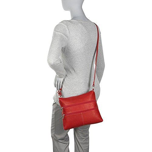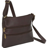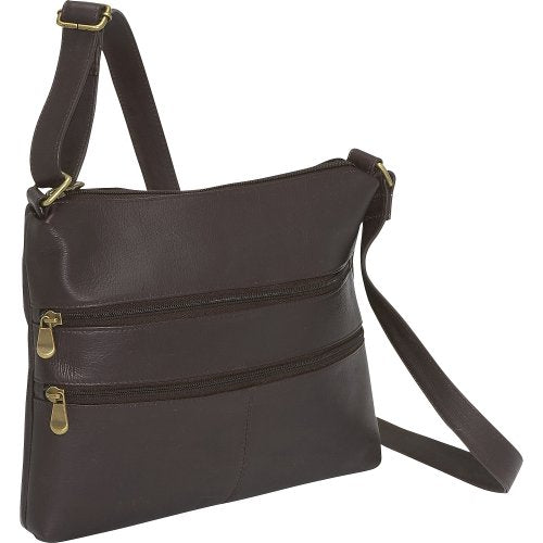 Details: Two zip cross body. A LeDonne leather cross body bag with dual front zippered pockets for easy access to those items you need in a hurry. This stylish leather bag is big enough to carry all your essentials plus some. Features: Genuine Full Grain Colombian Leather. Handcrafted. Two Front Zipper Pockets. Top Zip Closure. Interior Zip Pocket. Cell Phone Holder. PDA Holder. Two Pen Holders. Adjustable leather Strap, Drop Length: 26", Size: 12.5" x 3" x 10".