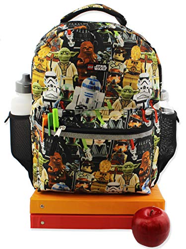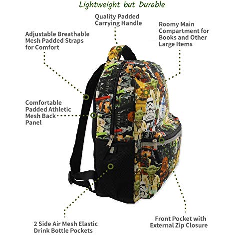 - FUN AND STYLISH - This awesome school bag features your favorite Disney Star Wars characters: C-3PO, R2-D2, Chewbacca, Yoda, Darth Vader, Stormtroopers, Han Solo, Luke Skywalker, Boba Fett, and more! It's the perfect backpack for any Star Wars, Lego, or Mandalorian fan!
