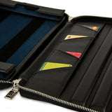 - Three viewing angles, one large slot, four business card slots, metal zipper pulls